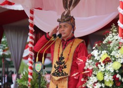 Gubernur Sugianto Sabran didampingi Wakil Gubernur Edy Pratowo menghadiri Upacara Peringatan Hari Jadi ke-77 Tentara Nasional Indonesia (TNI) Tingkat Provinsi Kalimantan Tengah (Kalteng) Tahun 2022.