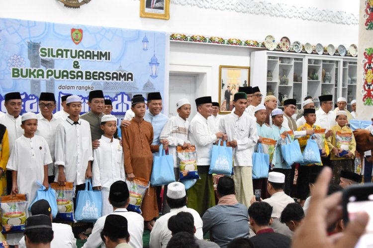 Lebih lanjut, dalam acara ini, dilakukan pula penyerahan simbolis paket sembako bagi anak yatim. Buka puasa itu turut dihadiri Wakil Gubernur Edy Pratowo, FORKOPIMDA, Ketua TP-PKK Aisyah Thisia Agustiar Sabran, Plt. Sekretaris Daerah Leonard S. Ampung, dan Kepala Perangkat Daerah.