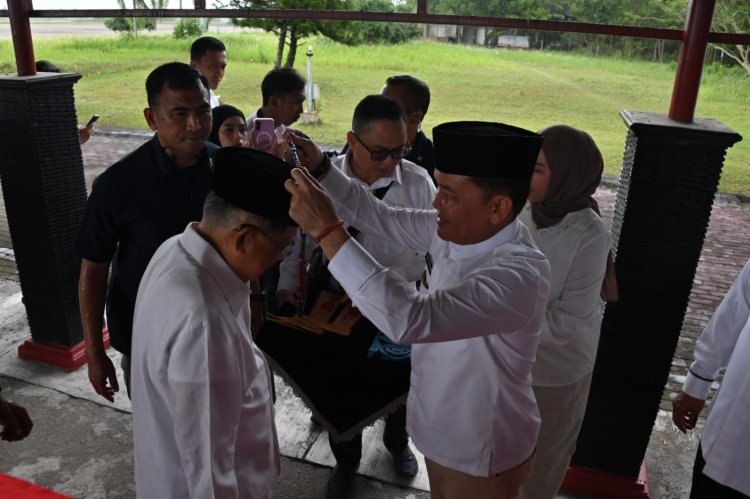 Gubernur Kalimantan Tengah (Kalteng) Agustiar Sabran didampingi Plt. Sekretaris Daerah Leonard S. Ampung menyambut kedatangan Ketua Umum Pengurus Pusat Dewan Masjid Indonesia (DMI) Pusat Jusuf Kalla, di VIP Room Bandara Tjilik Riwut Palangka Raya, Rabu, 12 November 2025.