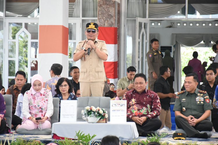Pada kesempatan itu, Gubernur, Wagub, dan Forkopimda secara simbolis menyerahkan bantuan pangan dari Presiden Prabowo untuk periode Februari-Maret 2026, sekaligus menyalurkan Bantuan Langsung Tunai (BLT) bagi penerima manfaat Kartu Huma Betang Sejahtera (KHBS).