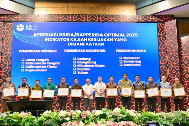 Pemerintah Provinsi Kalimantan Tengah (Pemprov Kalteng) menerima penghargaan Apresiasi Brida/Bapperida Optimal 2025 dari Badan Riset dan Inovasi Nasional (BRIN), untuk kategori dengan Indikator Kajian Kebijakan yang Dimanfaatkan.