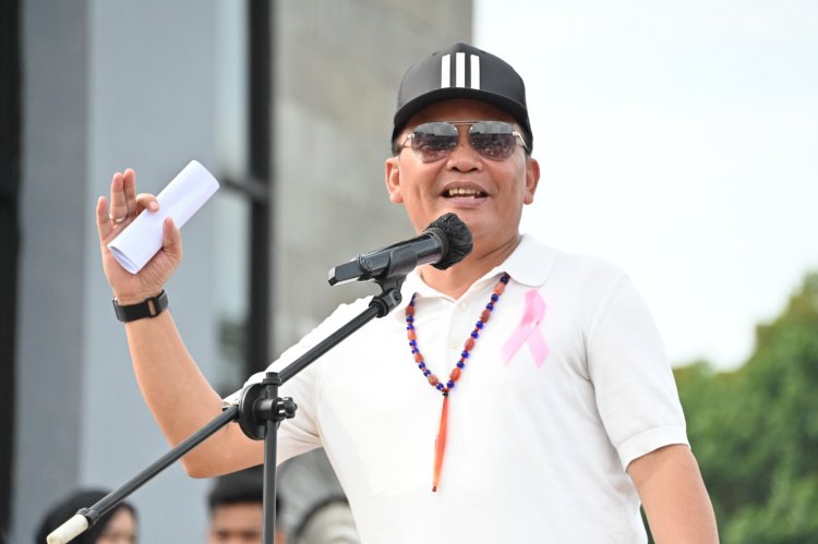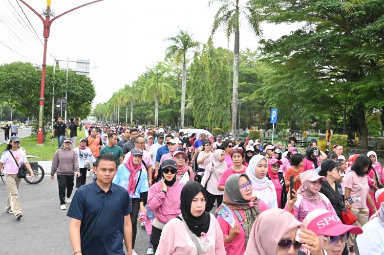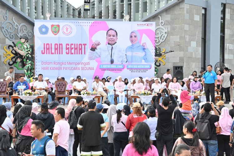 Gubernur Agustiar Sabran didampingi oleh Ketua TP PKK Provinsi Kalimantan Tengah (Kalteng) Aisyah Thisia Agustiar Sabran mengikuti Jalan Sehat Bersama Yayasan Kanker Indonesia (YKI) Kalteng di Bundaran Besar Palangka Raya, Minggu, 19 Oktober 2025.