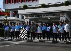 Wakil Gubernur (Wagub) Edy Pratowo melepas peserta Jalan Sehat dalam rangka Hari Desa Nasional Tingkat Provinsi Kalimantan Tengah (Kalteng) di Halaman Kantor Gubernur, Kota Palangka Raya, Jumat pagi, 9 Januari 2026.
