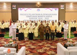 Wakil Gubernur (Wagub) Edy Pratowo menghadiri acara pelantikan pengurus DPD Himpunan Wanita Karya (HWK) Provinsi Kalimantan Tengah (Kalteng), yang berlangsung di Ballroom Aquarius Boutique Hotel Palangka Raya, Selasa, 13 Januari 2025.