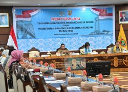 Wakil Gubernur Kalimantan Tengah (Wagub Kalteng) Edy Pratowo didampingi Asisten Perekonomian dan Pembangunan Herson B. Aden menerima kunjungan kerja anggota Komisi IX DPR RI, bertempat di Aula Eka Hapakat, Kompleks Kantor Gubernur, Kota Palangka Raya, Senin, 6 Oktober 2025.