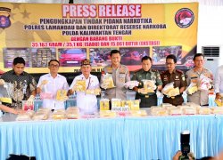 Usai menghadiri Rapat Pimpinan Polri Tingkat Polda Kalimantan Tengah (Kalteng), Gubernur Agustiar Sabran turut mengikuti Press Release Pengungkapan Tindak Pidana Narkotika Polda Kalteng, di depan Gedung Graha Bhayangkara, Kota Palangka Raya, Rabu, 18 Februari 2026.