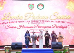 Penasihat DWP Kalimantan Tengah Aisyah Thisia Agustiar Sabran membuka secara resmi Lomba Paduan Suara Dharma Wanita Persatuan (DWP) Kabupaten/Kota, OPD dan Vertikal Tingkat Provinsi Kalimantan Tengah Tahun 2025 di Aula Jayang Tingang Lantai II Kantor Gubernur, Kota Palangka Raya, Kamis, 21 Agustus 2025.