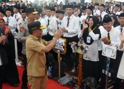 Gubernur Kalimantan Tengah (Kalteng) Agustiar Sabran menghadiri Upacara Penyambutan Mahasiswa Baru Universitas Palangka Raya (UPR) Angkatan Tahun 2025, yang digelar di Halaman Rektorat Universitas Palangka Raya, pada Senin, 11 Agustus 2025.