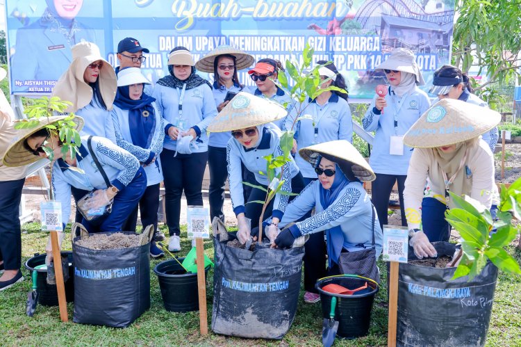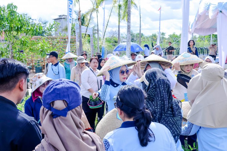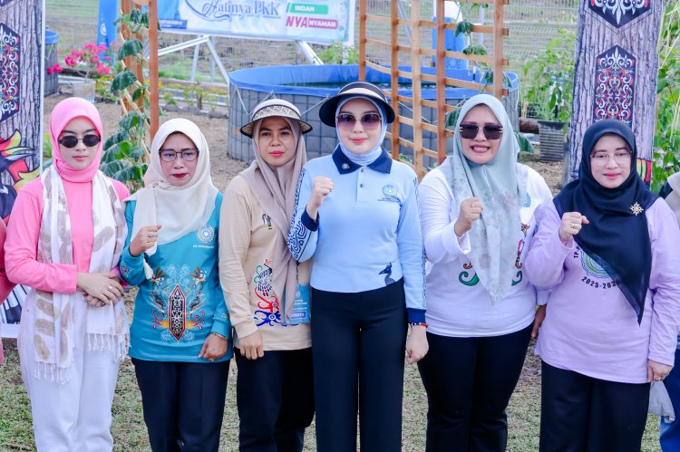 Ketua TP PKK Provinsi Kalimantan Tengah (Kalteng) Aisyah Thisia Agustiar Sabran bersama peserta Rakerda TP PKK Se-Kalteng mengunjungi Kebun Percontohan "Aku Hatinya PKK" yang berada di kawasan Persemaian Hiu Putih Berkah, Palangka Raya, Jumat, 19 September 2025.