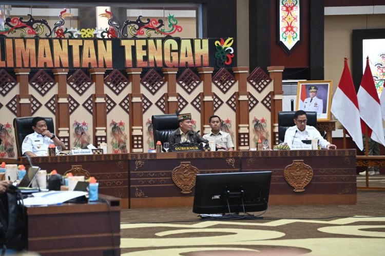 Gubernur Kalimantan Tengah (Kalteng) Agustiar Sabran didampingi Wakil Gubernur (Wagub) Edy Pratowo dan Plt. Sekretaris Daerah (Sekda) Leonard S Ampung menggelar rapat yang diikuti para Kepala Perangkat Daerah di lingkungan Pemerintah Provinsi (Pemprov) Kalteng.