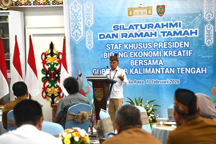 Gubernur Kalimantan Tengah (Kalteng) Agustiar Sabran menggelar ramah tamah untuk menyambut kehadiran Staf Khusus (stafsus) Presiden Bidang Ekonomi Kreatif (Ekraf) Yovie Widianto di Istana Isen Mulang, Kota Palangka Raya, Selasa siang, 10 Februari 2026.