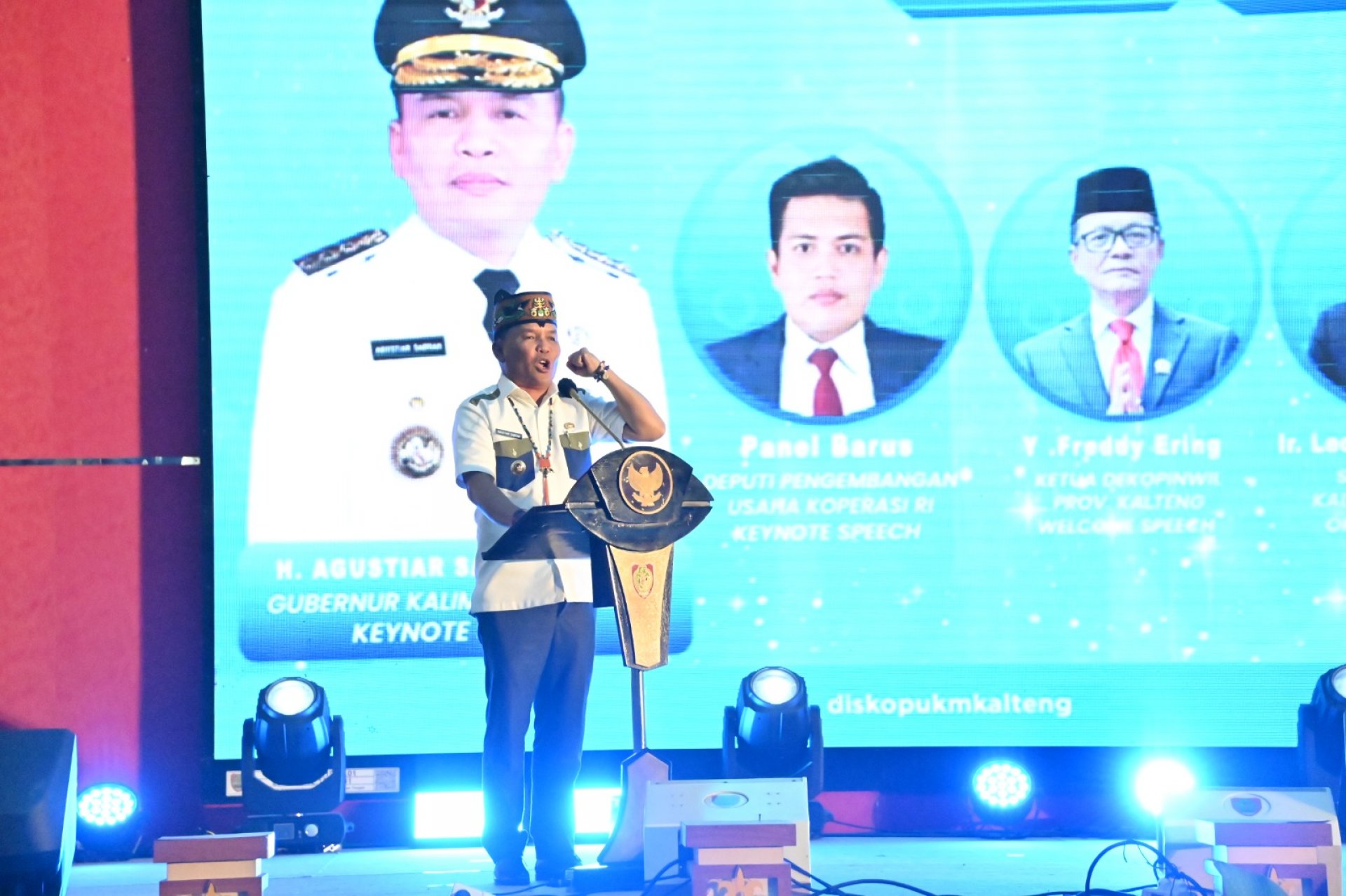 Dalam sambutannya, Gubernur Kalteng menegaskan bahwa, Koperasi memiliki peran penting dalam upaya meningkatkan Ketahanan Pangan, khususnya Koperasi Desa Kelurahan Merah Putih sebagai pilar utama, seperti tertuang dalam Asta Cita Presiden dan Wakil Presiden.