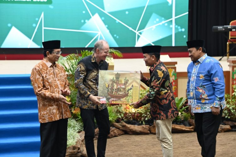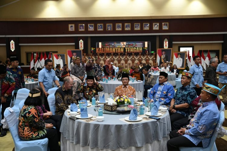 Gubernur Kalimantan Tengah (Kalteng) Agustiar Sabran menggelar silaturahmi dan ramah tamah bersama Menteri Agama (Menag) RI Nasaruddin Umar dan Duta Besar (Dubes) Kerajaan Denmark untuk Indonesia Sten Frimodt Nielsen di Aula Jayang Tingang, Kompleks Kantor Gubernur, Kota Palangka Raya, Kamis malam, 6 November 2025.