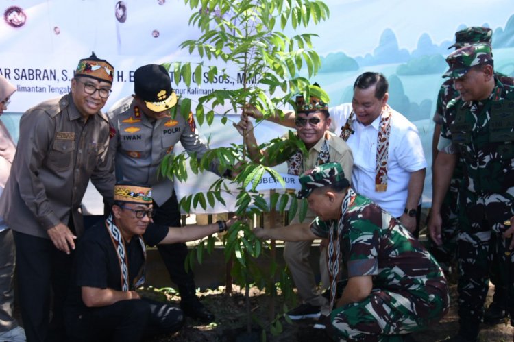 Gubernur bersama Pangdam XXII / Tambun Bungai Mayjen Zainul Arifin dan Kapolda Irjen Pol Iwan Kurniawan dan Kabinda Kalteng serta Bupati Kotim Halikinnoor dan Plt Sekretaris Daerah (Sekda) Kalteng Leonard S. Ampung melakukan tanaman pohon di depan sekolah.