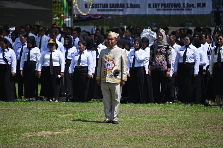 Gubernur Kalimantan Tengah (Kalteng) Agustiar Sabran bertindak selaku Inspektur upacara peringatan Hari Jadi ke-66 Kabupaten Barito Selatan (Barsel) yang  mengusung tema “Bekerja Sama Merangkul Semua“ di halaman Kantor Bupati Barsel, Kota Buntok, Selasa, 23 September 2025.