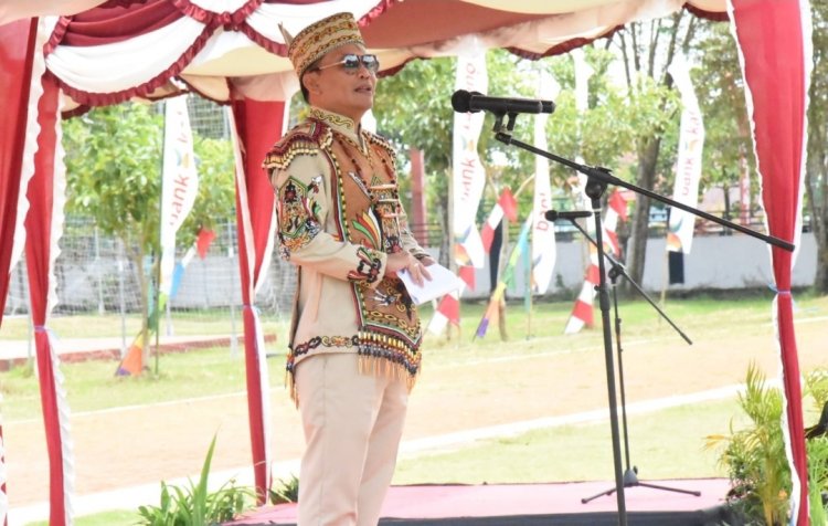 Gubernur Kalimantan Tengah (Kalteng) Agustiar Sabran bertindak selaku Inspektur Upacara Peringatan Hari Jadi ke-220 Kota Kuala Kapuas dan Hari Jadi ke-75 Pemerintah Kabupaten Kapuas, di Stadion Panunjung Tarung, pada Senin, 30 Maret 2026.