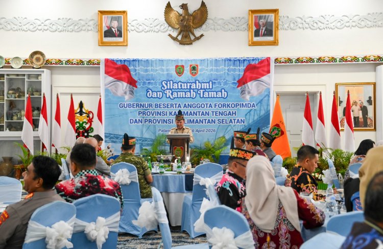 Gubernur Kalimantan Tengah (Kalteng) H. Agustiar Sabran menggelar silaturahmi dan ramah tamah dengan Gubernur Kalimantan Selatan (Kalsel) H. Muhidin beserta Forkopimda Kalsel di Istana Isen Mulang, Rumah Jabatan Gubernur Kalteng, Kota Palangka Raya, Kamis, 16 April 2026.