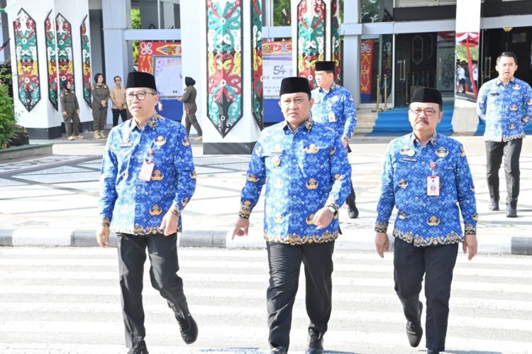 HUT ke-54 Korps Pegawai Republik Indonesia (KORPRI) diperingati secara sederhana dan khidmat dalam upacara yang dipimpin oleh Wakil Gubernur Kalimantan Tengah (Wagub Kalteng) Edy Pratowo di halaman kantor Gubernur, Kota Palangka Raya, Senin, 1 Desember 2025.