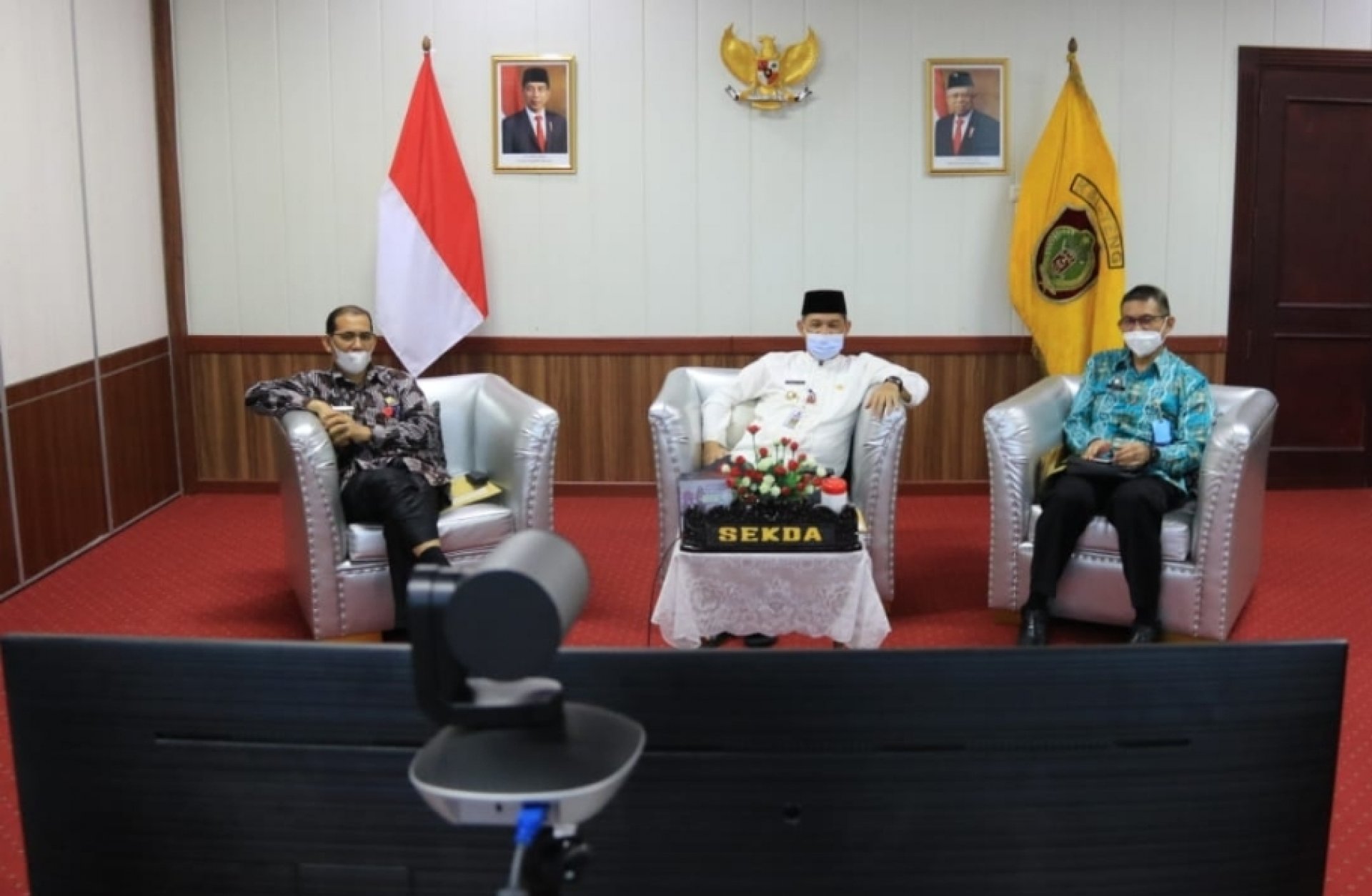 Sekretaris Daerah Provinsi Kalimantan Tengah (Sekda Kalteng) Fahrizal Fitri menghadiri rapat Analisa dan Evaluasi Perkembangan Penegasan Batas Daerah melalui konferensi video dari Ruang Rapat Bajakah 2, Kompleks Kantor Gubernur, Kota Palangka Raya, pada Jumat sore, 7 Mei 2021.