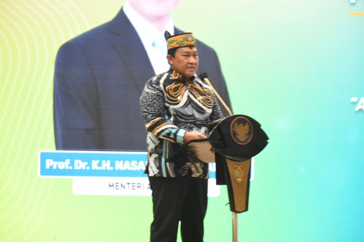 Sementara itu, Menag Nasaruddin Umar dalam sambutannya sangat bersyukur melihat keindahan Indonesia di Bumi Palangka Raya sangat berwarna dan indah, yang tercermin dari tarian yang disajikan. Menag kemudian mengingatkan tantangan yang dihadapi Kementerian Agama ke depan luar biasa berat.
