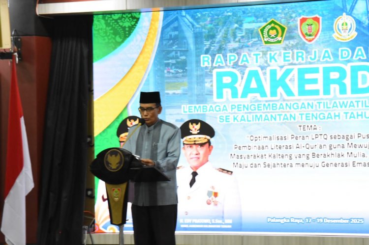 Wakil Gubernur (Wagub) H. Edy Pratowo resmi membuka Rapat Kerja Daerah (Rakerda) LPTQ Provinsi Kalimantan Tengah (Kalteng) Tahun 2025, bertempat di Aula Jayang Tingang (AJT) Lt. I, Kompleks Kantor Gubernur, Kota Palangka Raya, Rabu malam, 17 Desember 2025.