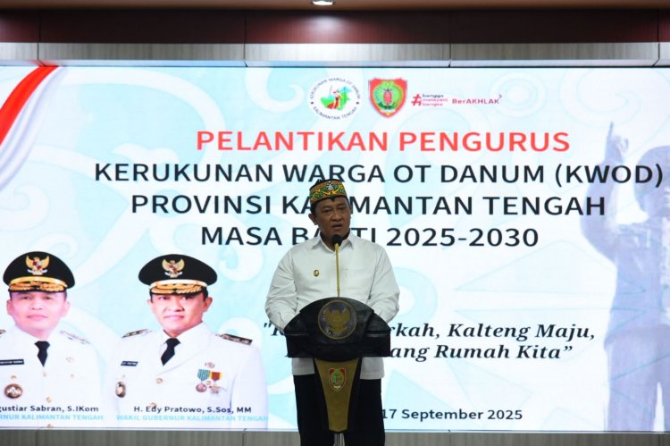 Wakil Gubernur (Wagub) Edy Pratowo, atas nama Gubernur H. Agustiar Sabran, melantik Pengurus Kerukunan Warga Ot Danum (KWOD) Provinsi Kalimantan Tengah (Kalteng) periode 2025–2030. Prosesi pelantikan digelar di Aula Jayang Tingang, Lantai 1 Kompleks Kantor Gubernur Kalteng, Kota Palangka Raya, Rabu, 17 September 2025.