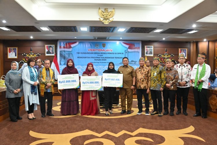 Wakil Gubernur Kalimantan Tengah (Wagub Kalteng) Edy Pratowo didampingi Asisten Perekonomian dan Pembangunan Herson B. Aden menerima kunjungan kerja anggota Komisi IX DPR RI, bertempat di Aula Eka Hapakat, Kompleks Kantor Gubernur, Kota Palangka Raya, Senin, 6 Oktober 2025.