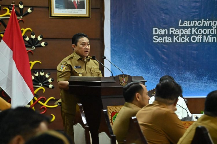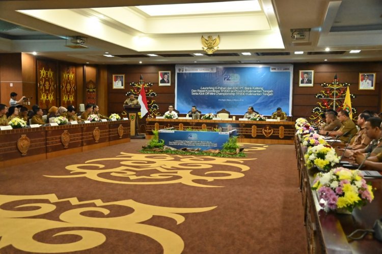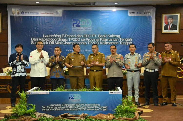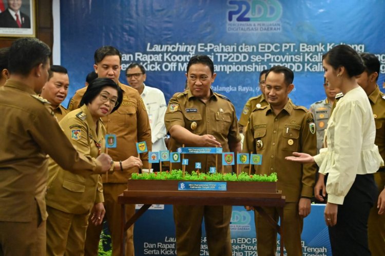 Wakil Gubernur (Wagub) H. Edy Pratowo Resmi meluncurkan Aplikasi  E-PAHARI yang dirangkai Kick Off Mini Championship Tim Percepatan dan Perluasan Digitalisasi Daerah Provinsi Kalimantan Tengah (TP2DD Kalteng), di Aula Eka Hapakat, Kompleks Kantor Gubernur Kalteng, Kota Palangka Raya, Senin, 9 Maret 2026.