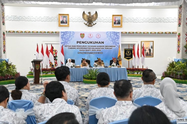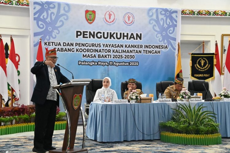 Gubernur Agustiar Sabran menyaksikan pengukuhan Ketua dan Pengurus Yayasan Kanker Indonesia (YKI) Cabang Koordinator Kalimantan Tengah (Kalteng) Masa Bakti 2025–2030 yang digelar di Istana Isen Mulang, Kota Palangka Raya, Senin, 11 Agustus 2025.